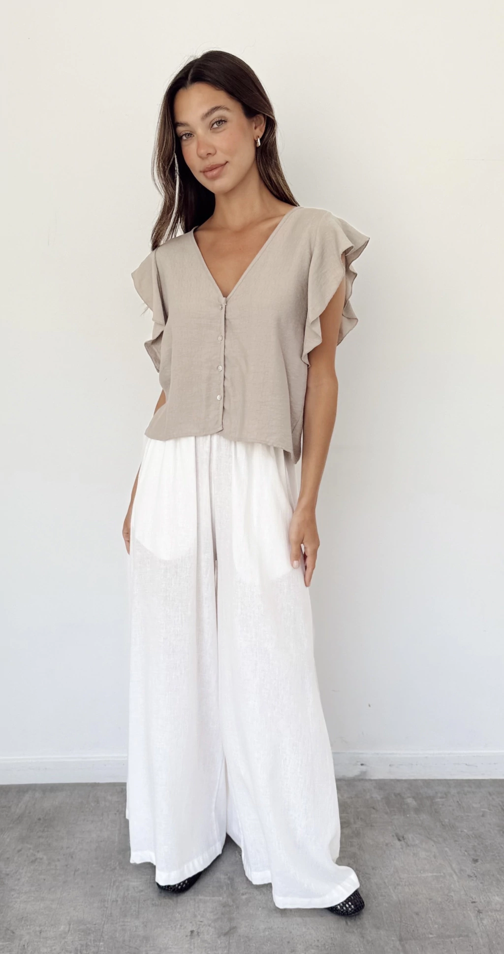 Nuestra camisa Clairea esta confeccionada en lino madrileño, muy fresca para usar esta temporada. Su acceso es por medio de sus botones nacarados en el frente, tiene escote en V profundo y mangas cortas con volados. Su corte es ancho y larga hasta la cadera, usala con nuestro short de lino Stapelia y tus sandalias preferidas.