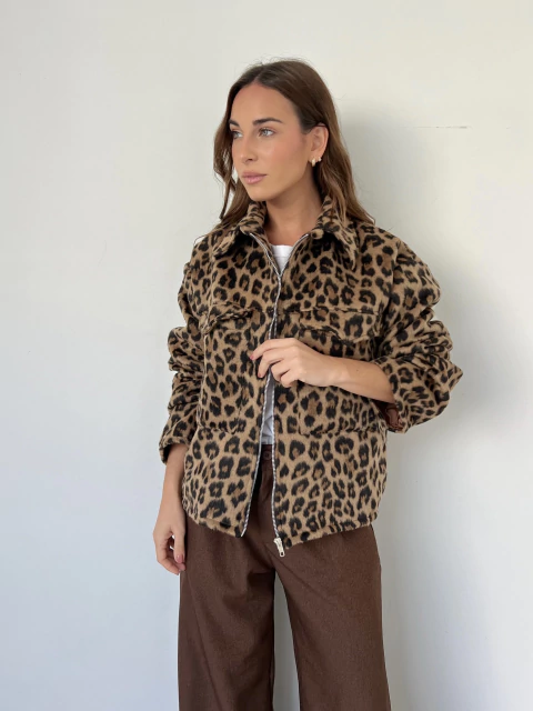 Te presentamos nuestra chaqueta Zafirey confeccionada en paño estampado animal print. Su acceso es mediante su cierre metálico, tiene bolsillos en el frente. Presenta cuello tipo solapa y mangas largas. Es de terminación recta hasta la cadera. Usala con nuestros pantalones para un look diario y relajado.  O con nuestras faldas para un look mas elegante.