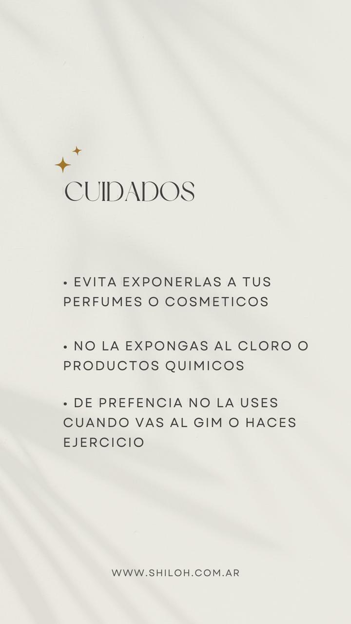 SE PUEDEN LIMPIAR CON UN PAÑO SECO PARA EVITAR QUE SE ALMACENEN PARTICULAS QUE LE QUITEN SU BRILLO O QUE PUEDEN MANCHAR LA PIEL. ADEMÁS, RECOMENDAMOS GUARDAR LOS ACCESORIOS EN UN LUGAR SIN CONTACTO DIRECTO CON EL SOL PARA EXTENDER SU DURACIÓN.