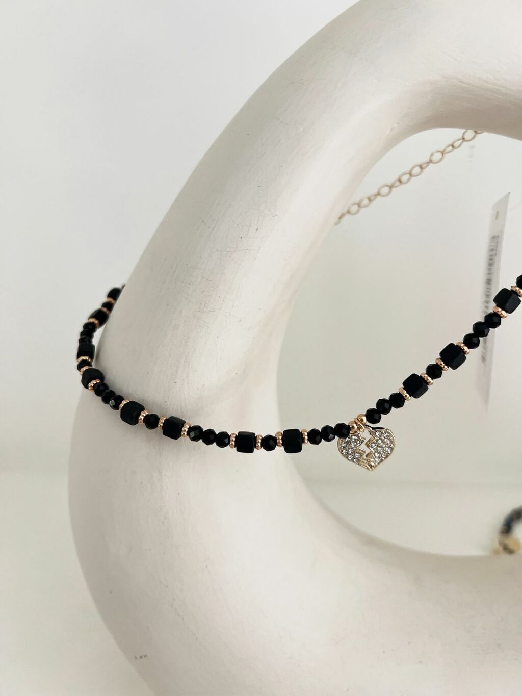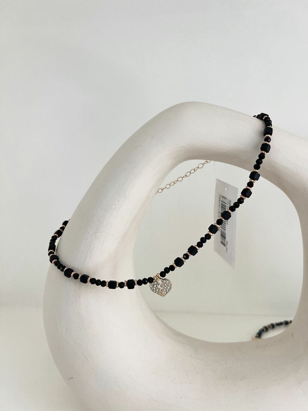 Collar Adonn confeccionado en simil piedras y arandelas metalicas con dije central en forma de corazon con strass.