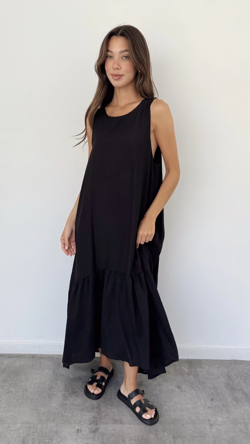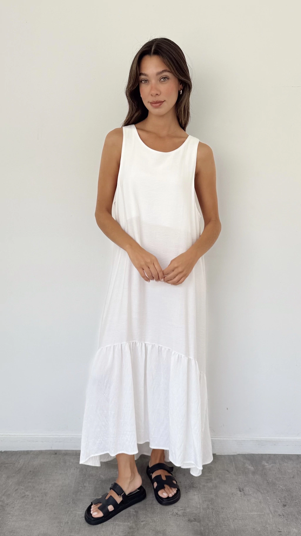 Nuestro maxi vestido Acleia confeccionado en lino madrileño es la prenda que estabas buscando para estar comoda y fresca todo el día. Tiene breteles angostos y escote redondo con sisa cavada. Cuenta con forro interno tipo bandeau para evitar tranparencias. Es ancho y largo irregular con volado en su terminacion. Usalo con sandalias o zapatillas para un look canchero.