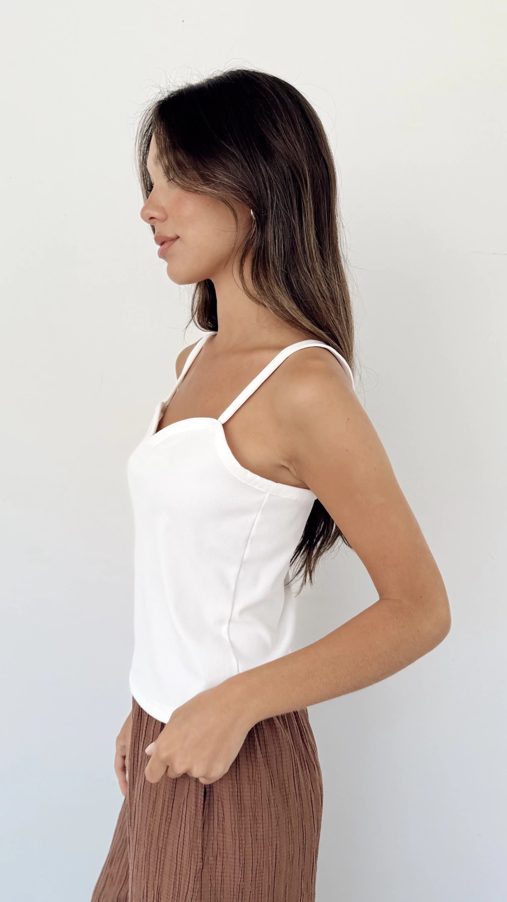 Nuestra musculosa Francis esta confeccionado en lycra soft con textura morley que se adapta a tu silueta. Es una basico indispensable para tu guardaropa. Ademas la podes usar abajo de prendas caladas para estar super comoda.