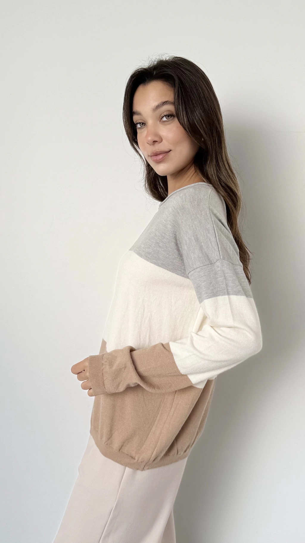 Te presentamos nuestro Sweater Derise confeccionado en bremer rayado horizontal en variacion de colores. Tiene cuello redondo con terminación sin costura muy canchera y hombro caido con mangas largas y puño elastizado. Es de estilo over, amplio y largo hasta por debajo de la cadera. Una prenda que eleva tus looks, combinalo con tu jean preferido y nuestra remera alexia para un look casual.