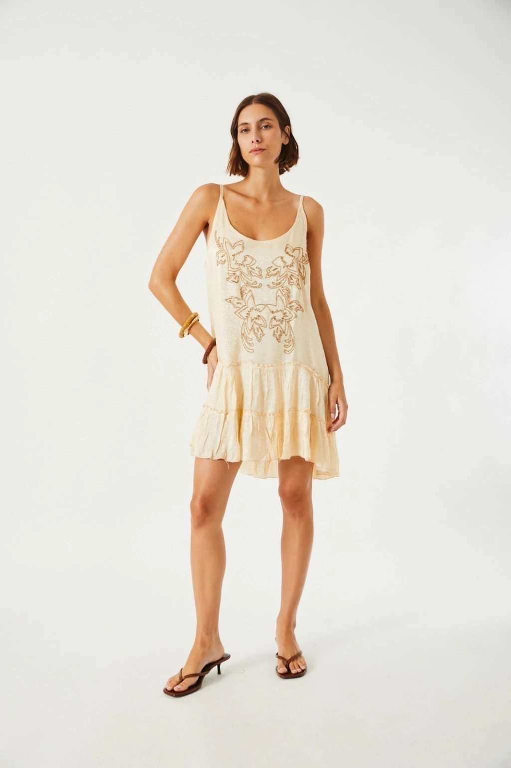El vestido Kiri es soñado, su textura esta confeccionada con tela labrada, con forro interno. En su frente lleva diseño de flores con canutillos, estilo muy boho. Sus breteles son finos y se pueden regular. En la parte inferior lleva volados generandole un movimiento increible. Amamos las piezas importadas!
